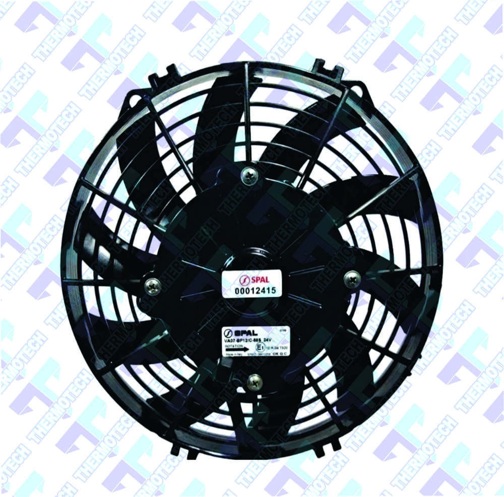 Marca: SPAL Tensão: 24 volts Tipo: Soprante Diâmetro Hélice: 9 polegadas 225 mm Medidas externas: 246 mm x 51,10 mm Referência Spal: 30100464 Modelo Spal: VA07-BP12/C-58S Fluxo ar: 1.180 m3/h 696 CFM Consumo: 4,1 amperes (50 Watts) Vedação: Certificado IP68 contra água e poeira