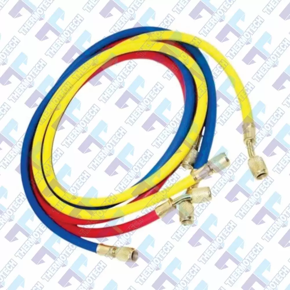 O Conjunto de Mangueiras R22/R134/R404 Suryha é utilizado para instalações e manutenções em sistemas de refrigeração. As mangueiras possuem alta resistência ao atrito e um reforço de nylon interno que proporciona a melhor performance em aplicações de alta pressão e são usadas junto com o Manifold.