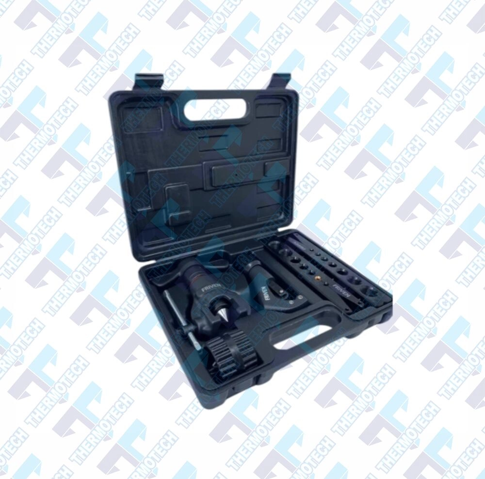 O conjunto inclui ferramentas essenciais para o trabalho profissional flangeador, cortador de tubos e escareador e acompanha uma maleta de transporte, que oferece organização, proteção e praticidade no dia a dia do refrigerista.