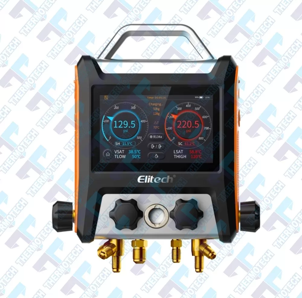 O Manifold Modelo MS-4000 é o modelo mais avançado da Elitech, integra funções como medição de pressão e temperatura, teste de estanquiedade, medição de vácuo, medição de peso do refrigerante e registro de dados (Quando conectado a Balança Digital).