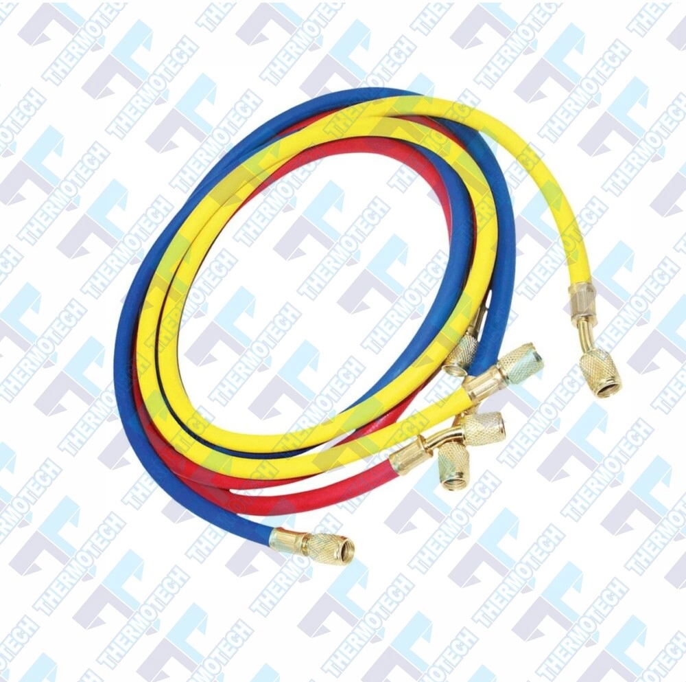 O Conjunto de Mangueiras 336 RYB 600 a 3000 PSI Friven é a solução ideal para instalações e manutenções em sistemas de refrigeração, oferecendo alta resistência e performance superior. Asseguram eficiência em aplicações de alta pressão e são especialmente projetadas para funcionar em conjunto com o Manifold. Codificadas por cores para fácil identificação, a vermelha é para alta pressão, a azul para bai xa pressão e a amarela para serviços gerais. Com cone xões de 1/4" - SAE, válvula autocentrante e reforço de nylon interno e comprimento de 90 cm, oferecem longa vida útil e desempenho confiável. As mangueiras Friven se destacam pela e xcepcional qualidade e confiabilidade, oferecendo desempenho superior em todas as aplicações.